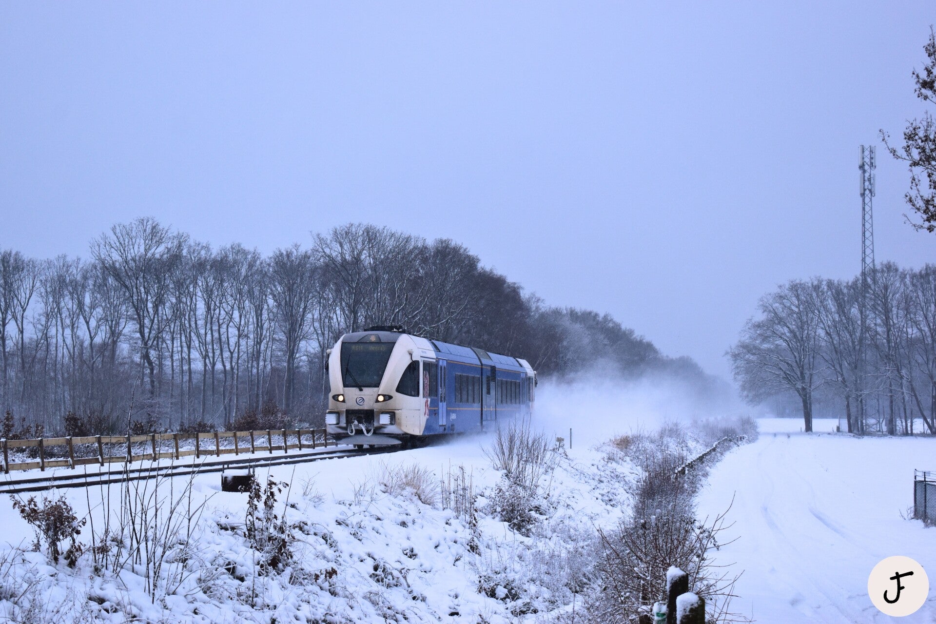 Sint Agatha, 5 januari 2026. Arriva GTW 278 is in winterse omstandigheden onderweg als RS11 32351 naar Venray.