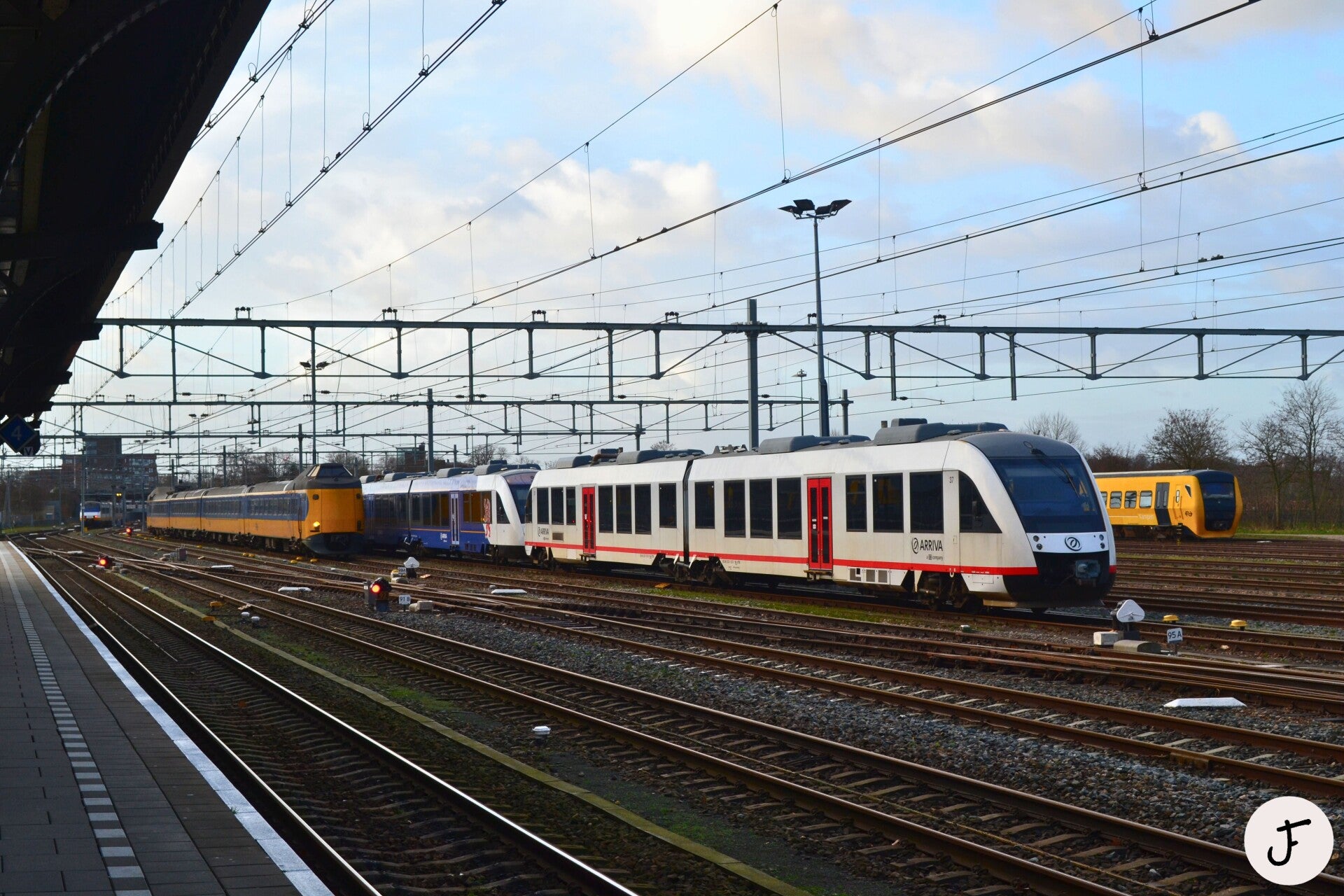 Nijmegen, 3 januari 2018. Arriva LINT LINT 37 + 29 met links daarvan ICM 4245 en SGM welke vertrekt in de richting van Wijchen. Rechts is ook nog de terzijde gestelde DM'90 3403 of 3410 te zien.