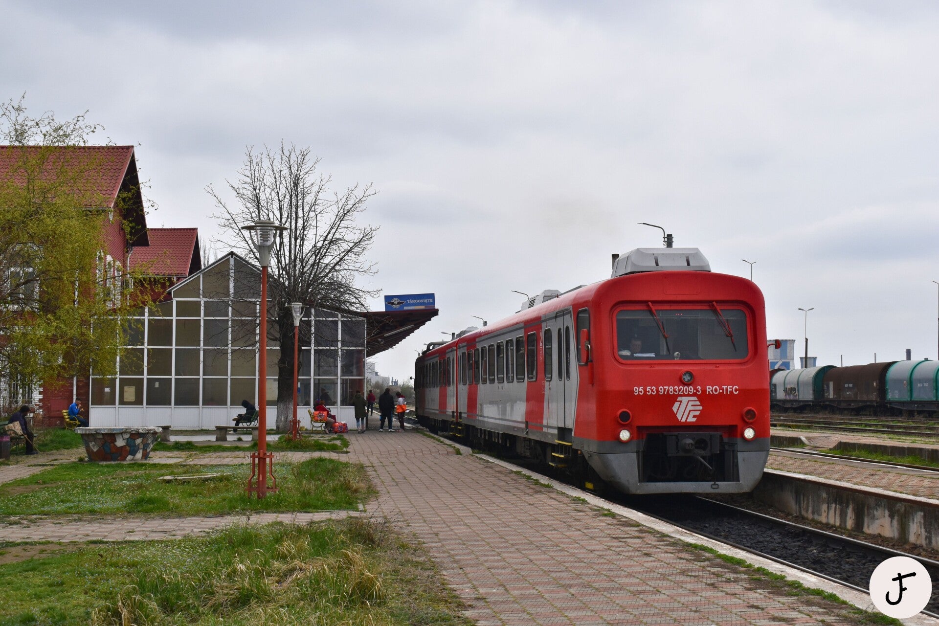 Târgoviște, 27 maart 2025. Na aankomst op het eindpunt als R 10263 van București Nord wordt deze Wadloper een paar uur op een zijspoor gezet. Later op de dag zou deze weer het noordstation van de Roemeense hoofdstad te rijden.