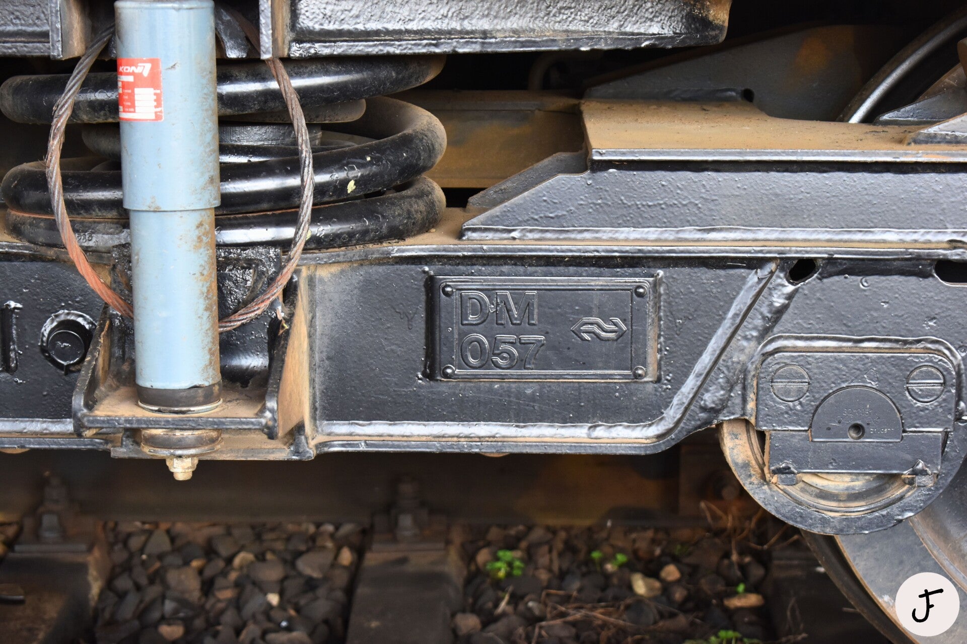 Ploiești Sud, 25 maart 2025. Het nummerplaatje van NS draaistel DM057 onder TFC 3225 (ex NS B 3224).