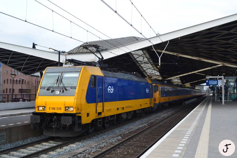 Tilburg, 1 maart 2018. NS 186 039 met ICRmh stam 16508 onderweg als intercity 1131 naar Eindhoven. Achterop loopt een voor mij onbekende locomotief.