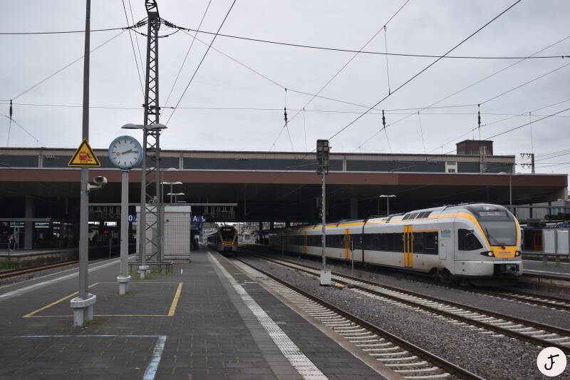 Oberhausen Hbf, 20 maart 2025. Eurobahn ET 7.12 staat te wachten tot iedereen is uit- en ingestapt om te vertrekken als RE3 naar Düsseldorf Hbf.