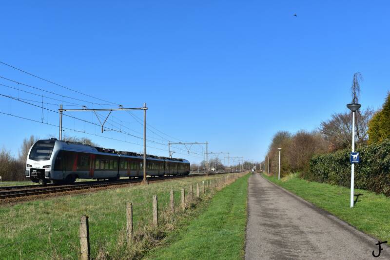 Zevenaar, 19 maart 2021. Abellio ET 25 2307 nadert het station van Zevenaar. Wegens werkzaamheden op station Arnhem Centraal, rijdt de RE19 tussen Zevenaar en Düsseldorf.