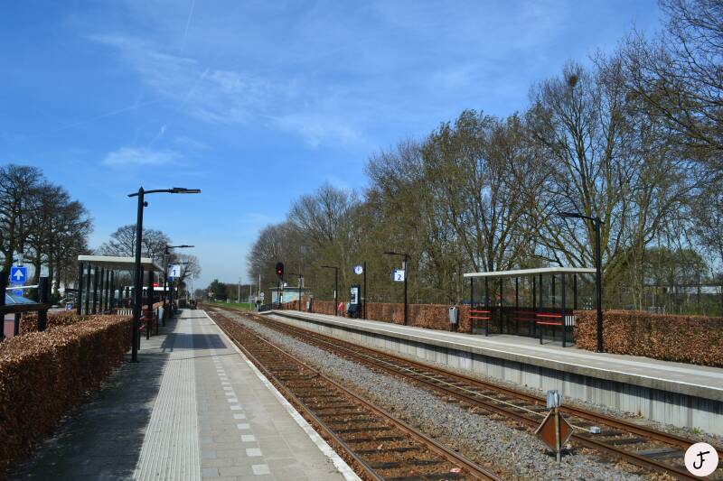 Lievelde, 31 maart 2017. Een blik over de perrons van station Lichtenvoorde-Groenlo.