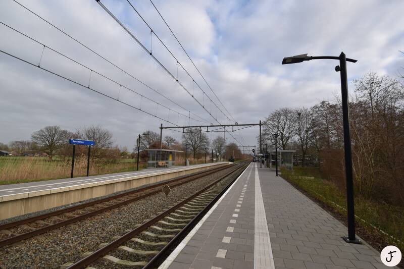 Rheden, 7 februari 2023. De perrons van Rheden liggen in bajonetligging.
