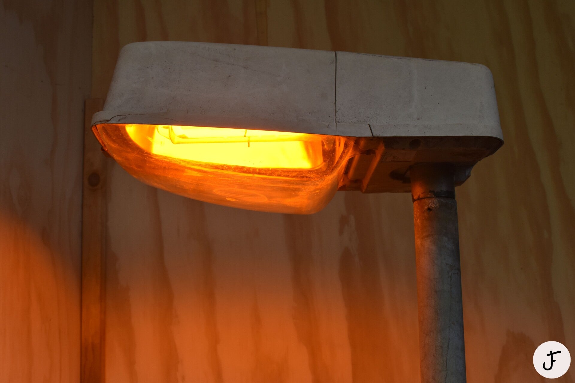 25 oktober 2025. De opwarmende SOX-E 26 watt in het armatuur.